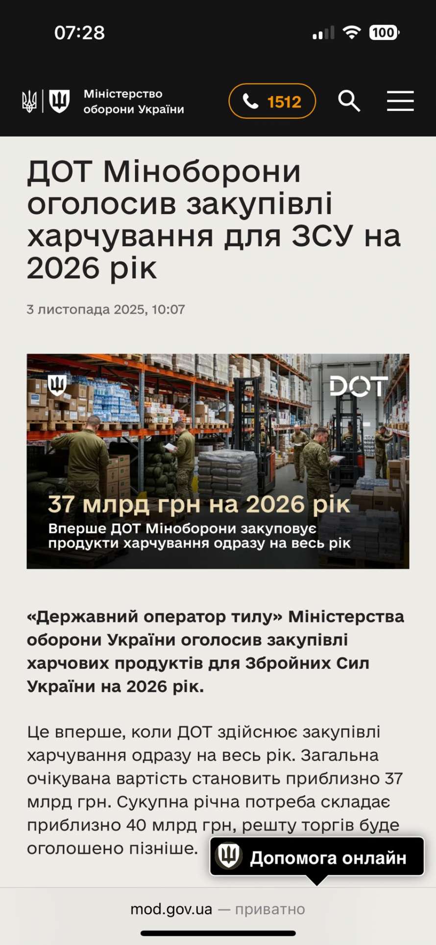 Днями DOT - Державний оператор тилу оголосив торги на весь рік. Всі лоти досить великі.