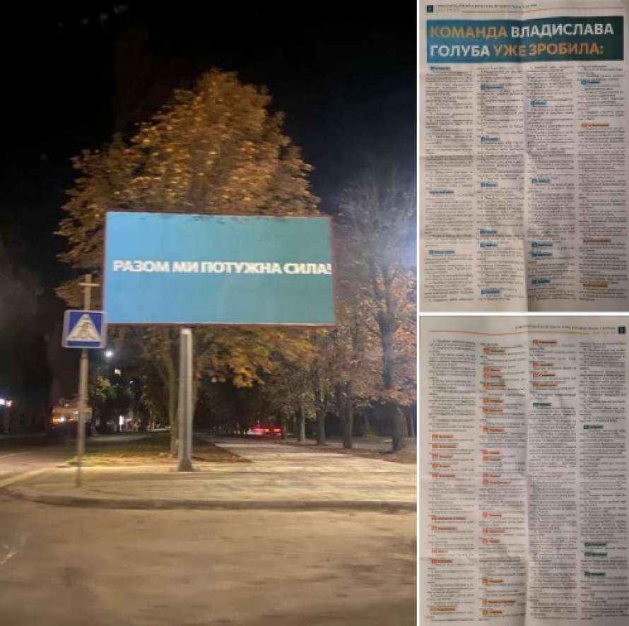«Разом ми потужна сила». Так каже кандидат В.Голуб. Реальний лозунг людини, коли роблять усі, а привласнює він. Все в тій самій газеті, яка мені так сподобалася, було багато цифр – заслуг кандидата. Шляхом перегляду рішень обласної ради та інших матеріалів зі сторінки ОДА, можна чітко побачити, що привласнювати чужу роботу він таки вміє…