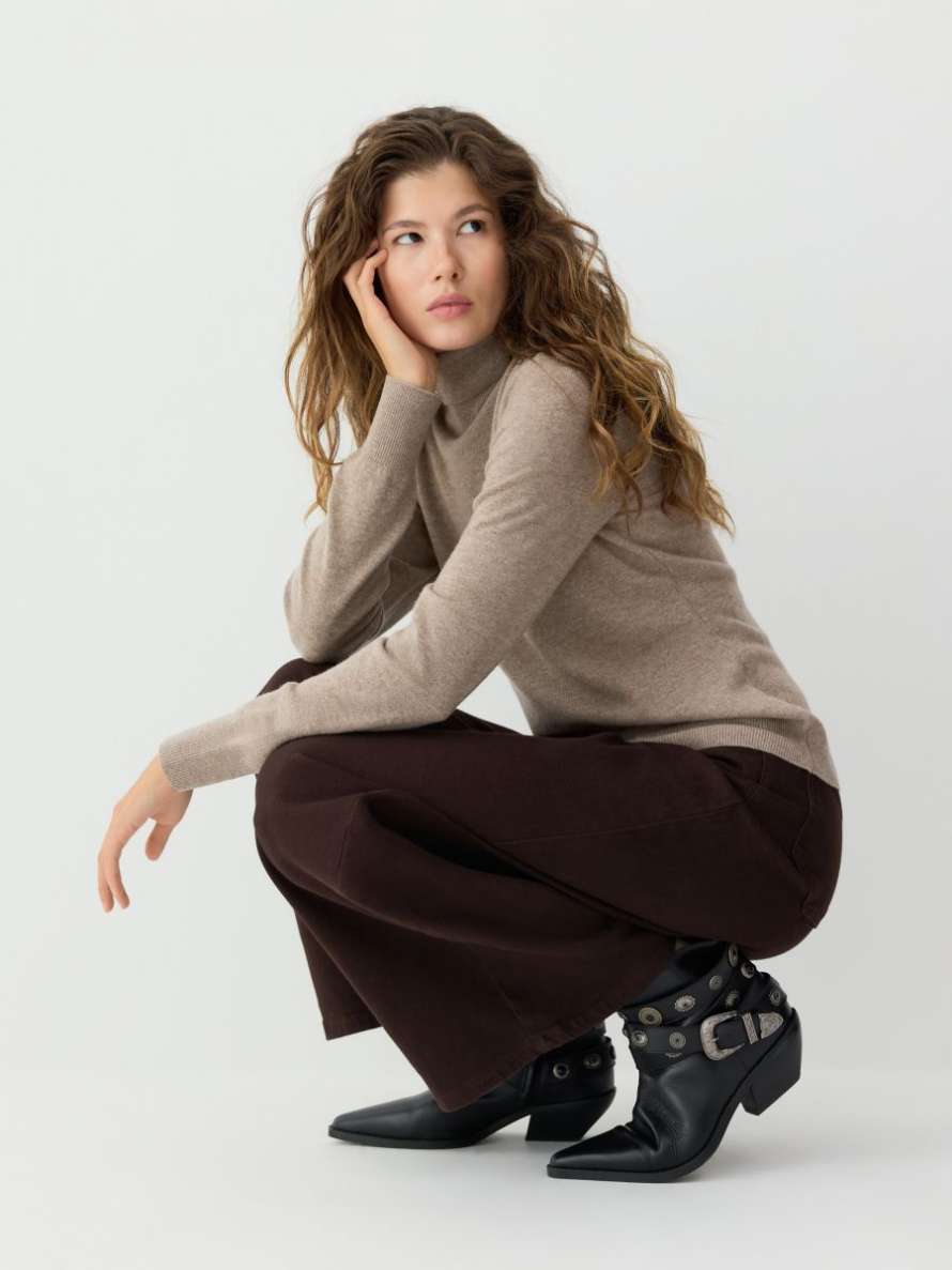 Щільні гольфи із фактурного трикотажу — надійний вибір для холодних днів. М'яка шерсть дарує приємне тепло, а виразна текстура додає образу глибини характеру. Поєднуй їх з елегантними брюками, класичними спідницями чи пальтом, створюючи стильні комплекти, що поєднують практичність і витонченість.