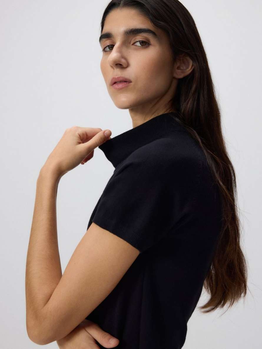 Хоча вони зустрічаються рідше, короткі гольфи Reserved ідеально підходять для весни та літа. Вони зберігають характерний силует, але завдяки коротким рукавам стають легшими та дихаючими. Такий гольф можна носити з джинсами, лляними штанами або легкою спідницею — а в парі з жакетом створюється витончений літній образ.