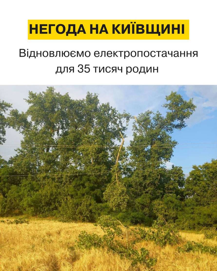 Через сильний вітер та грозу 35 тисяч сімей на Київщині залишилися без електропостачання.