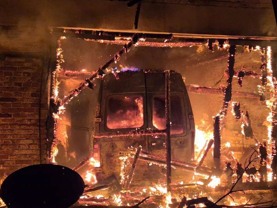 "Попередньо, знищені три службові автівки, гаражі і господарські приміщення, пошкоджений харчоблок. На місці влучання виникла пожежа - її загасили", - написав начальник Чернігівської ОВА В'ячеслав Чаус.