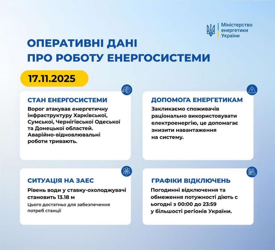 Ворог атакував енергетичну інфраструктуру Харківської, Сумської, Чернігівської, Одеської та Донецької областей.