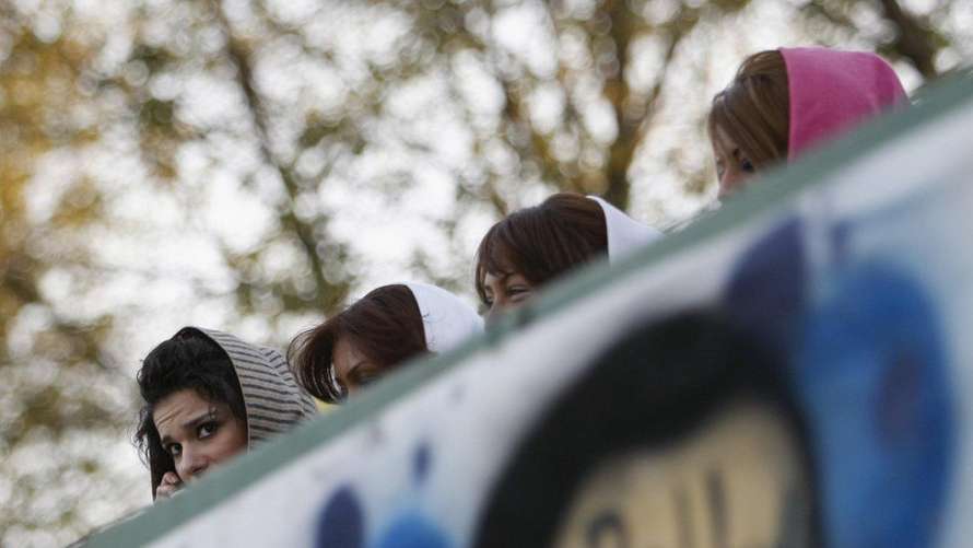 Болельщицы следят за матчем у торгового центра в Тегеране в 2008 году