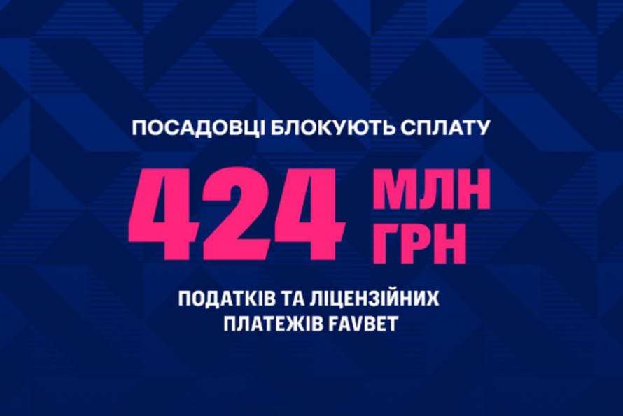 Група компаній FAVBET заявляє про блокування видаткових операцій на своїх рахунках, через що державний бюджет не може отримати більш як 424 мільйони гривень податкових та ліцензійних платежів від найбільшого платника податків легального iGaming-сектору України.