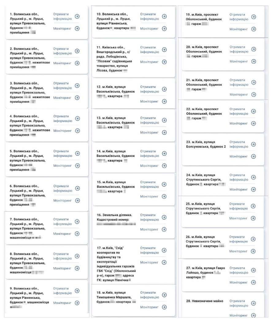 Ми вирішили перевірити, чи відповідає це красиве описання реальності. І справді — Григорович володіє майже 30 об’єктами нерухомості. Згідно з даними державних реєстрів, його майновий портфель налічує 27 об’єктів: це житлові та нежитлові приміщення, зокрема у Луцьку та Волинській області, звідки родом його дружина.