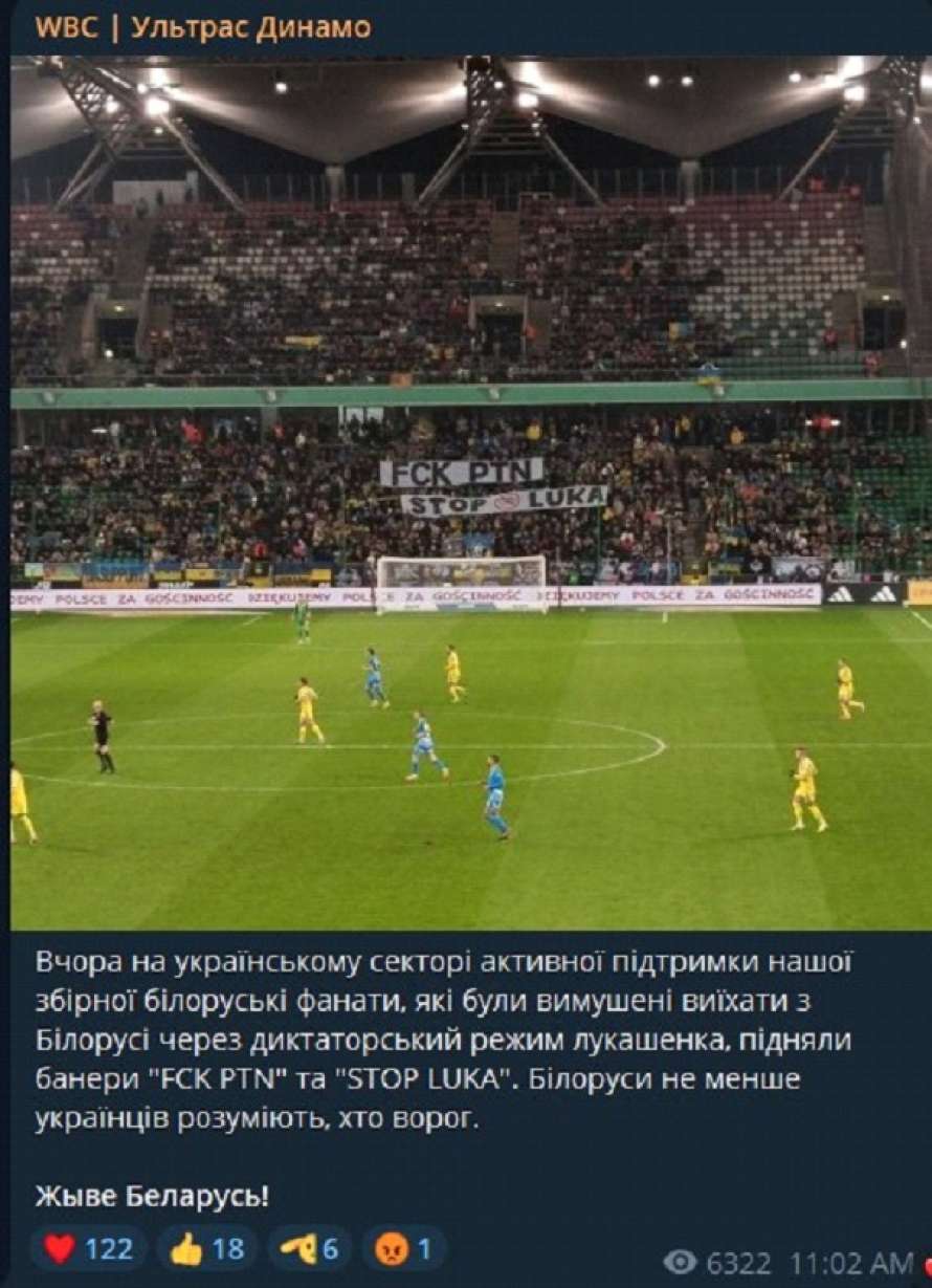 Белорусские фанаты поддержали Украину баннерами против путина и лукашенко на матче сборной