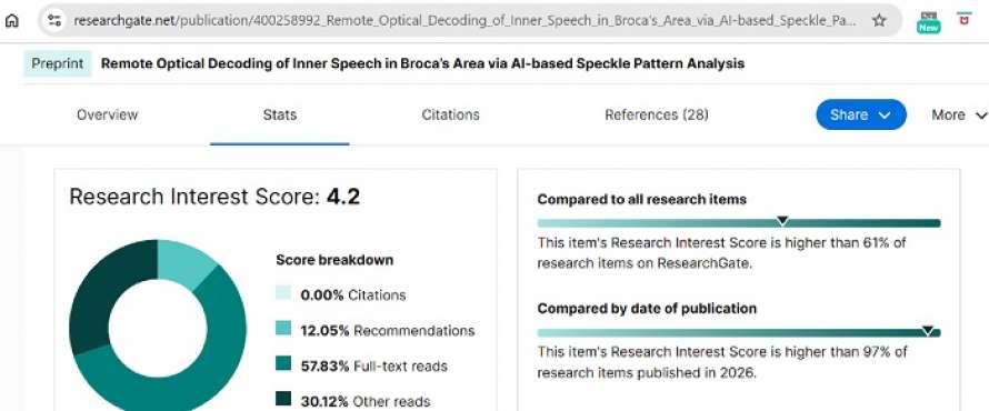 The preprint describing the study has already attracted 205 reads on ResearchGate, placing it among the top 3% of research interest for 2026 publications, indicating strong early engagement within the scientific community (Fig. 2).