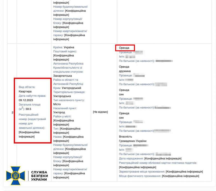 Несмотря на проживание семьи в квартире, в своей декларации за 2023 год чиновник НАБУ не указал эту недвижимость вообще, а в декларации за 2024 год обозначил ее как арендованную. Впрочем, согласно полученным доказательствам, подставное лицо, на которое была оформлена недвижимость, оплату за пользование жильем не получало.