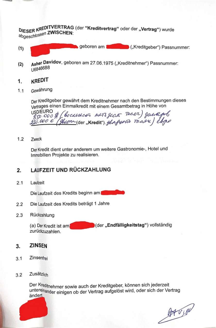 Über viele Jahre hinweg baute Davidov ein System auf persönlichem Vertrauen auf. Daher stammen auch die Geschädigten aus seinem nahen Umfeld und aus der Familie. Erst danach kamen externe Investoren hinzu. Entsprechend erhielten in der Anfangsphase alle Auszahlungen – aus dem Geld der neuen Investoren. Gerade diese ersten Auszahlungen waren nach Angaben der Geschädigten ausschlaggebend: Sie schufen Vertrauen und förderten weitere Einlagen. Danach begann dieses „Geschäft“ ins Stocken zu geraten. Zu den Gründen, mit denen die Einstellung der Auszahlungen erklärt wurde, gehörten zunächst die COVID-19-Pandemie und später der Krieg in der Ukraine (wie oben erwähnt, sollen Immobilienobjekte angeblich auch in der Ukraine erworben worden sein). Nach Angaben der Geschädigten wurden mit allen Verträge unterzeichnet. Hier sind einige davon.