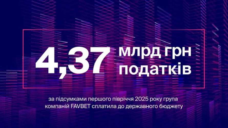 За первое полугодие 2025 года группа компаний FAVBET перечислила в государственный бюджет Украины 4,37 млрд гривен налоговых платежей.