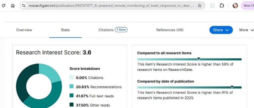 Fig. 2. Scientific community response to the group’s earlier Journal of Biomedical Optics publication, illustrating the high level of research interest and visibility that framed subsequent stages of the work