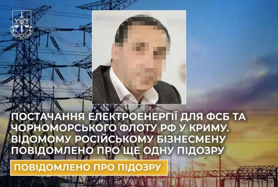 "Следствие установило, что после временной оккупации Крыма подконтрольное бизнесмену энергоснабжающее предприятие формально перерегистрировали в г. Херсон. В то же время он создал в Севастополе филиал, который зарегистрировали в так называемых госорганах рф. Именно через этот "филиал" в 2015-2016 годах было заключено не менее 20 договоров на поставку электроэнергии оккупационным администрациям и силовым структурам рф", - сообщил Офис генпрокурора.