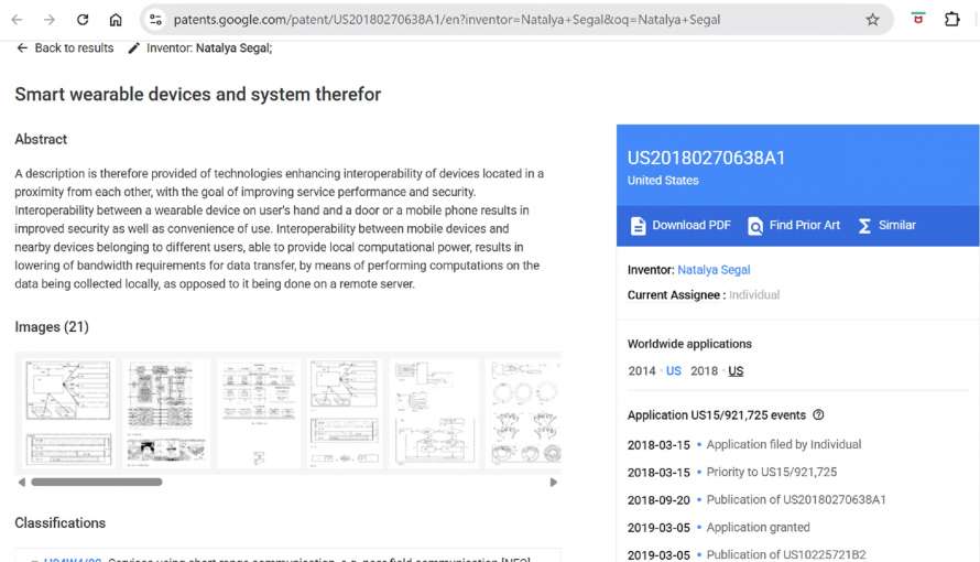 Image 3: Screenshot of patent: https://patents.google.com/patent/US20180270638A1/en?inventor=Natalya+Segal&oq=Natalya+Segal taken from Google Patents (image 1 is the screenshot of it’s “cited by” section):