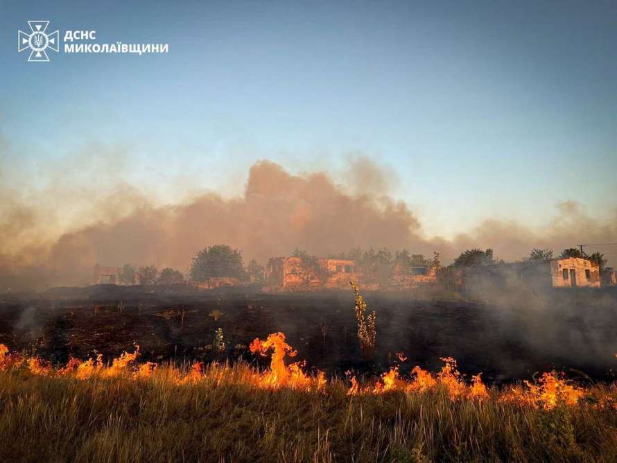 "В Николаеве сейчас бушует три масштабных пожара, где огонь из-за порывистого ветра подобрался к жилому сектору. В микрорайоне Терновка, где ориентировочная площадь составляет 10 га, пламя успело повредить 2 жилых дома и 3 хозяйственные постройки", - сообщает ГСЧС.