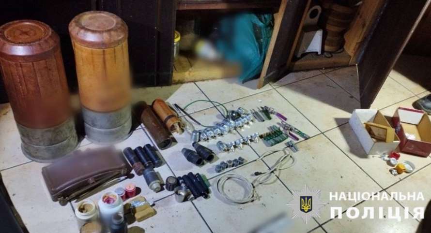 В ходе обысков у задержанного изъяли противопехотные и минометные мины, запалы, дымовые гранаты, электродетонатор, взрывчатые вещества, взрыватели, патроны, самодельные взрывные устройства.