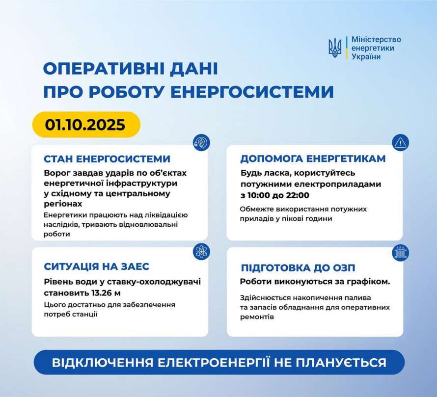 На 1 октября система сбалансирована, плановых ограничений для потребителей не предусмотрено.