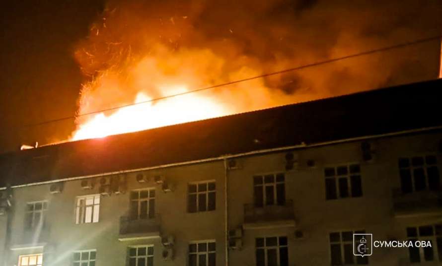 Пожар вспыхнул в отеле в центре Сум в результате российского удара беспилотниками утром 27 февраля.