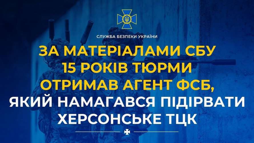 На основании доказательной базы Службы безопасности агент ФСБ, разоблаченный СБУ в марте 2025 года в Херсоне, получил 15 лет лишения свободы с конфискацией имущества.