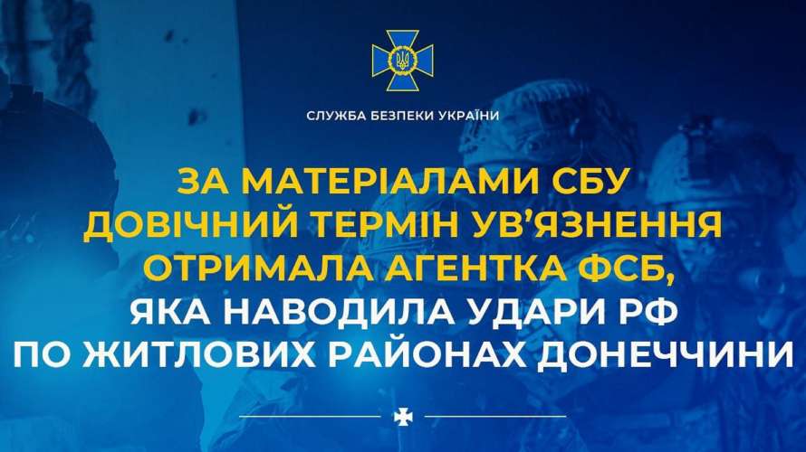 По доказательной базе СБУ пожизненный срок лишения свободы с конфискацией имущества получила агент ФСБ, которая корректировала комбинированные атаки рашистов по Донецкой области.