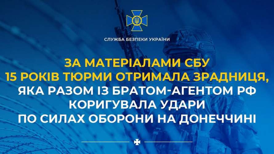Осужденной является 49-летняя местная безработная, которая помогала своему брату-агенту РФ наводить обстрелы по Силам обороны на Краматорском и Лиманском направлениях.