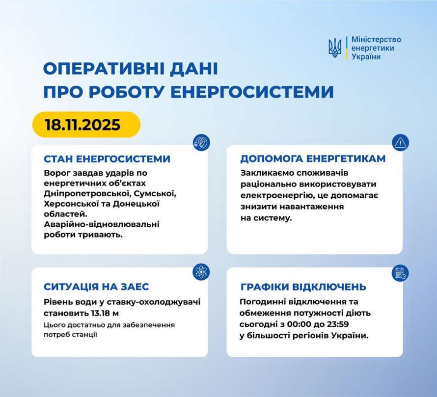 Враг нанес удары по энергетическим объектам Днепропетровской, Сумской, Херсонской и Донецкой областей.