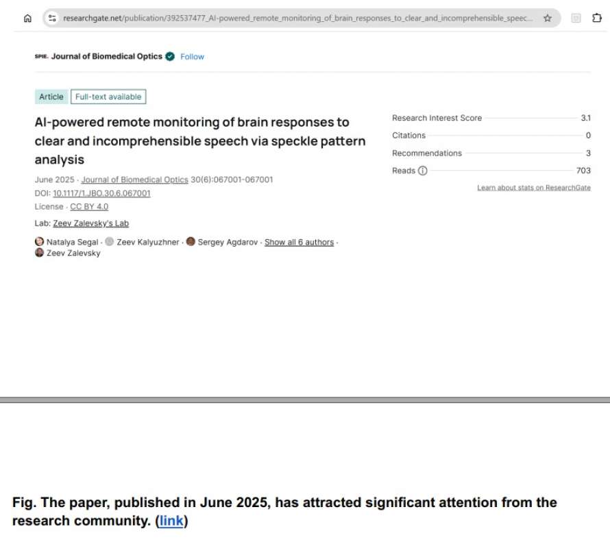 AI-powered remote monitoring of brain responses to clear and incomprehensible speech via speckle pattern analysis. Journal of Biomedical Optics, 30(6), 067001.