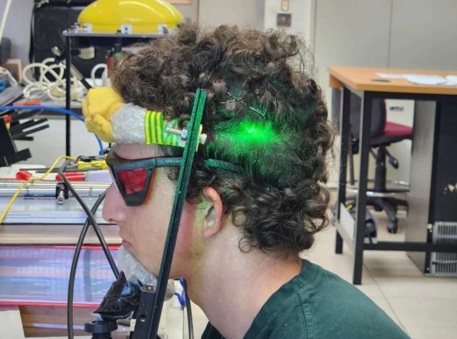 В лаборатории под Тель-Авивом луч света касается головы добровольца.