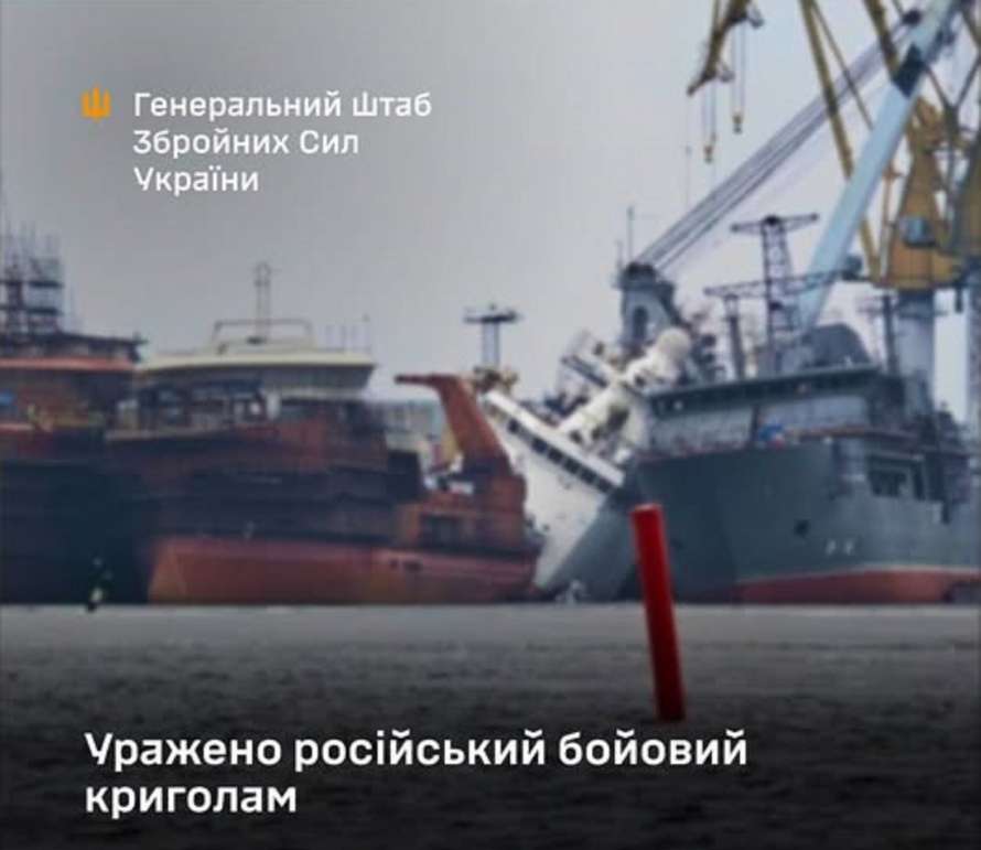 Во время совместной операции Сил обороны Украины в Ленинградской области РФ в ночь на 25 марта на Выборгском судостроительном заводе был поражён корабль российских оккупантов.