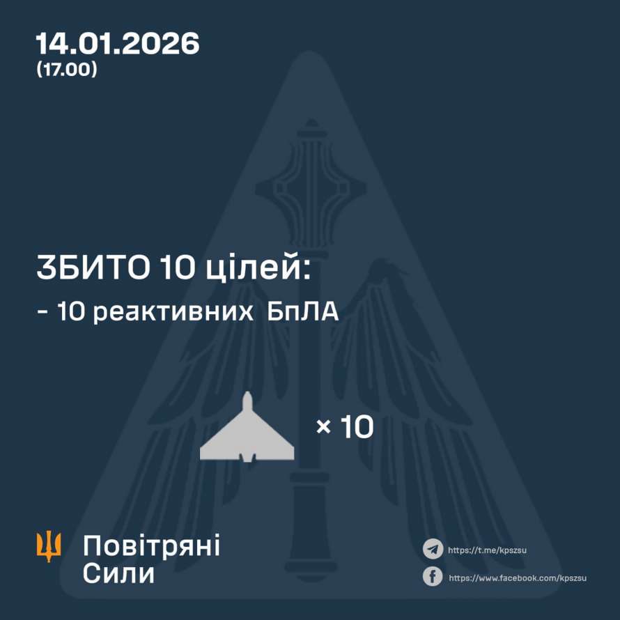 В период с 07.00 до 17.00 14 января 2026 года враг активизировал воздушные атаки в направлении города Киев, применяя реактивные БПЛА.