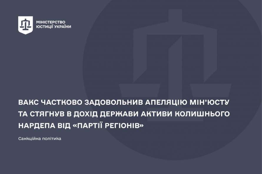 Речь идет об апелляционной жалобе Минюста на решение Высшего Стокоррупционного суда от 4 сентября 2025 года. Решением суда первой инстанции было частично удовлетворено исковое заявление Минюста к Олейнику о применении санкций, сообщает Минюст.