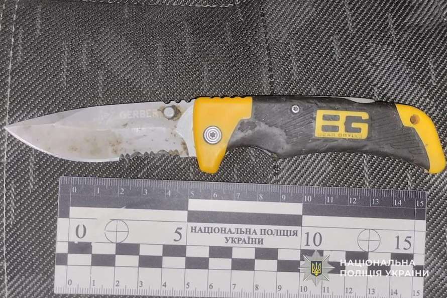 Правоохранители задержали нападавшего на месте происшествия в порядке ст. 208 Уголовного процессуального кодекса Украины. Во время осмотра территории полицейские изъяли предмет, вероятно, использованный как орудие преступления – нож.