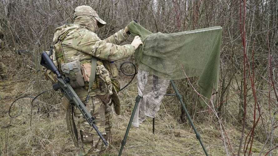Військовий проводить тренувальну розвідку за допомогою виносної антени дальнього зв'язку