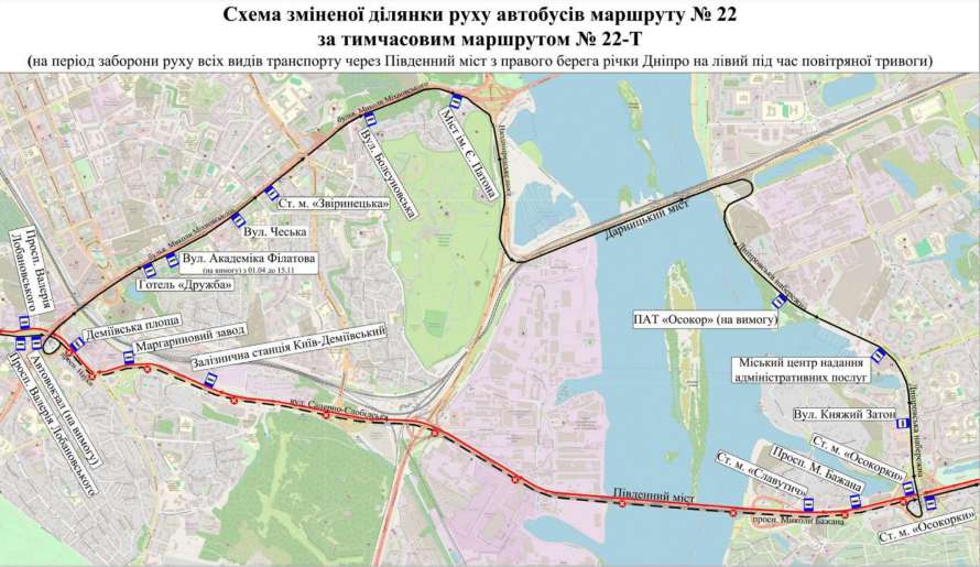 Пассажирам советуют внимательно следить за номером, указанным на транспорте, поскольку он может отличаться от обычного. Схемы движения во время воздушной тревоги есть на официальном сайте КГГА.