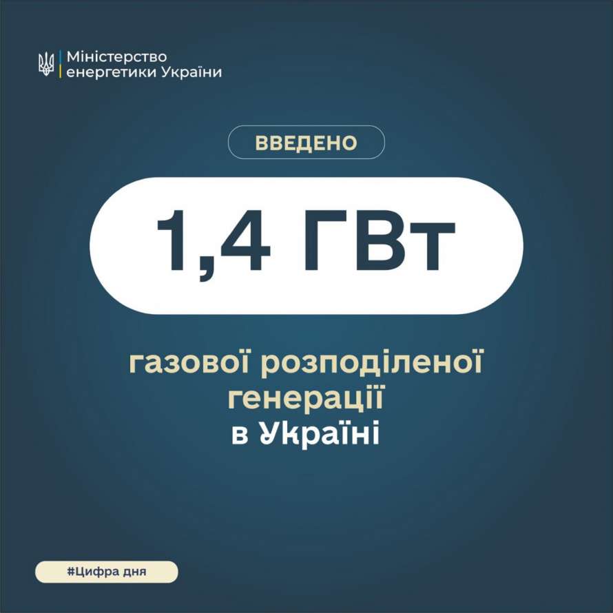 В Украине с начала войны введено в эксплуатацию 1,4 ГВт газовой генерации.