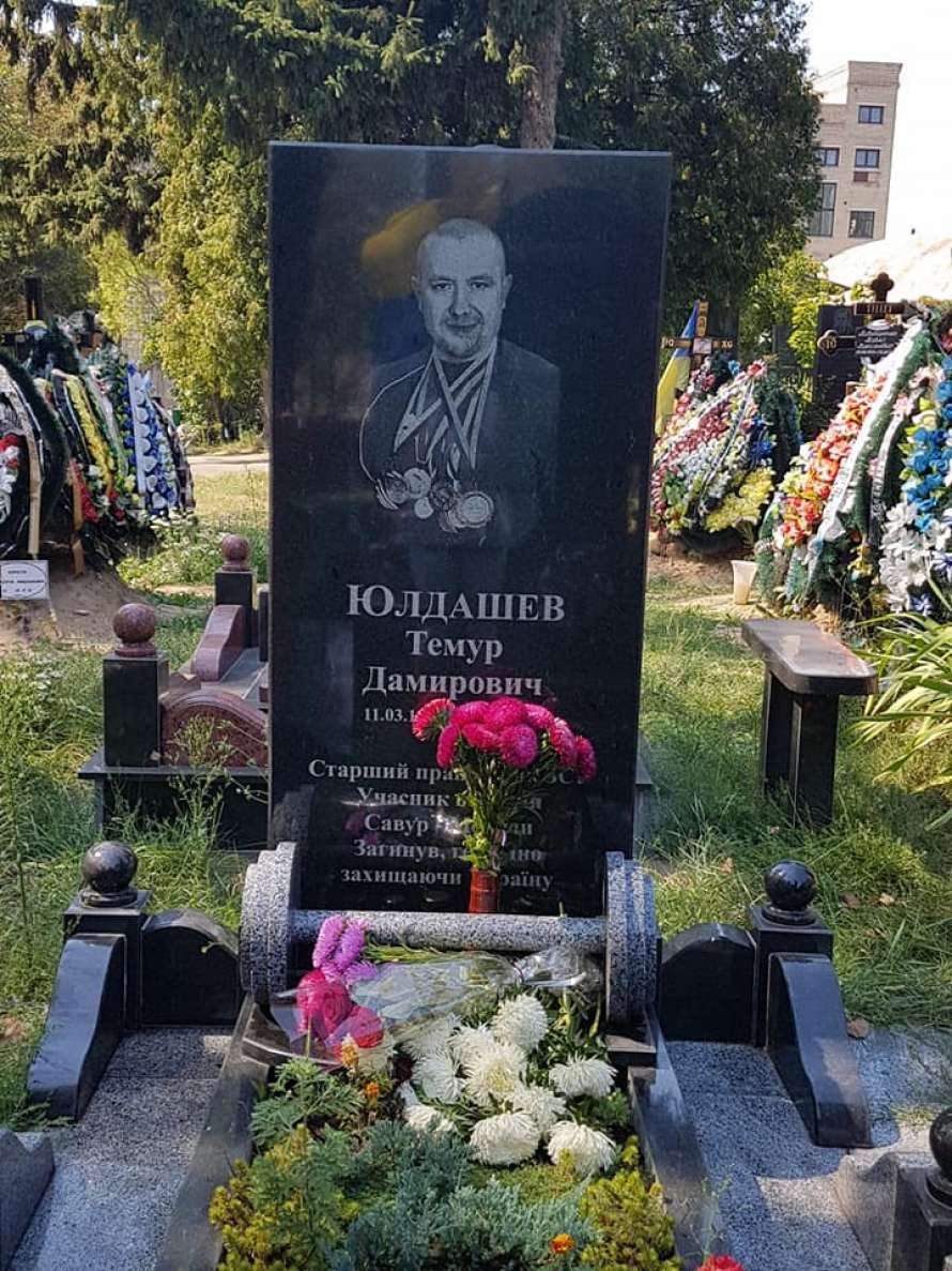 Темур Юлдашев (Тренер) - командир батальйону патрульної служби міліції особливого призначення "Тимур". Він в складі групи 3-го полку спецпризначення, 24 серпня прорвався для порятунку поранених воїнів, які під командуванням Гордійчука утримували Саур-Могилу, але їх машина була розстріляна російськими найманцями в Петровському. Пораненого Івана Журавльова полонили, інших поранених найманці добили; Юлдашев загинув. У березні 2015 року було ідентифіковано тіло Темура, знайдене на Саур-Могилі. 26 травня 2015 Темура Юлдашева поховали на Лук'янівському військовому кладовищі Києва. Могила знаходиться по головній алеї праворуч поруч зі входом.
