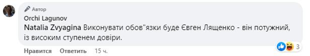"Виконуватиме обов'язки Євген Лященко - він потужний, з високим ступенем довіри", - написав він.