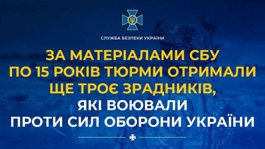 За доказовою базою військової контррозвідки та слідчих Служби безпеки по 15 років ув’язнення з конфіскацією майна отримали ще троє зрадників, які воювали проти Сил оборони України.