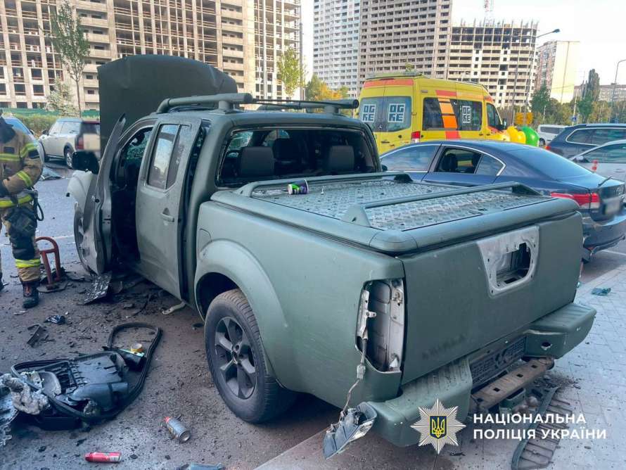 У Подільському районі на парковці біля житлового будинку стався вибух на пасажирському сидінні автомобіля, пофарбованого під військовий.