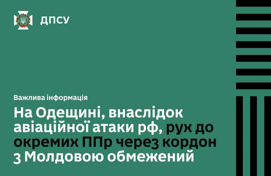 На Одещині внаслідок авіаційної атаки РФ рух до окремих пунктів пропуску через державний кордон з Молдовою обмежений.