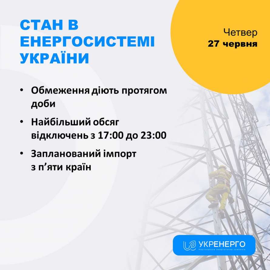 Через масштабність пошкоджень імпорту та аварійної допомоги з країн Європи не вистачає для підтримки балансу в енергосистемі, тому Диспетчерський центр "Укренерго" вимушений застосовувати заходи обмеження споживання і для промислових, і для побутових споживачів.