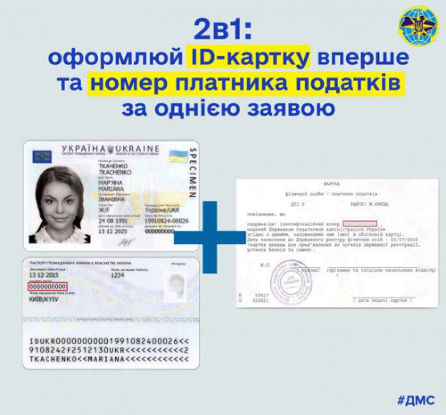 Послуга з оформлення паспорта громадянина України у вигляді картки вперше з одночасним присвоєнням їй реєстраційного номера облікової картки платника податків у підрозділах ДМС та ЦНАП надається безкоштовно.