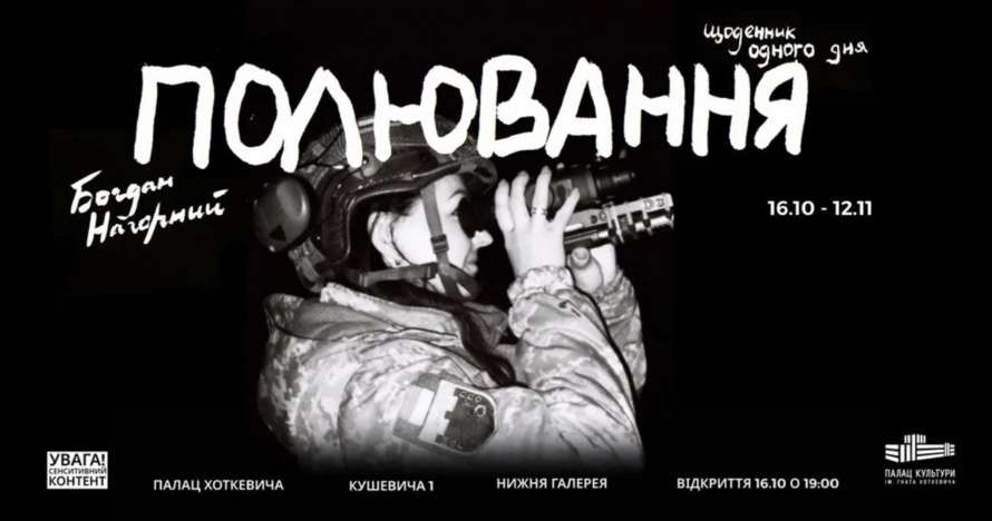 Запрошуємо на відкриття документального фотопроєкту «Полювання. Щоденник одного дня» Богдана Нагорного — 16 жовтня о 19:00 у Палаці Хоткевича.