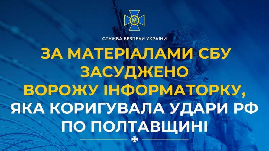За доказовою базою СБУ реальний термін ув’язнення отримала російська інформаторка, яку у лютому цього року затримали за коригування ворожого вогню по Полтавщині.