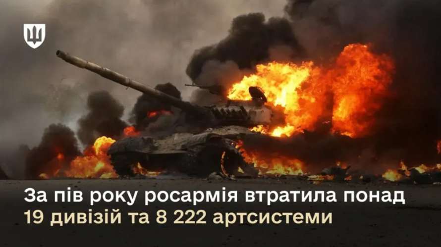 За даними Генштабу ЗСУ, за 6 місяців поточного року ворог втратив 1 311 танків та 2 885 бойових броньованих машин. 1 311 машин – це умовно 42 танкових батальйони. Найбільше танків у першому півріччі росармія втратила у лютому – 331 одиниця. Найбільше ворожих ББМ наші воїни спалили у січні – 610 та березні – 607 одиниць.